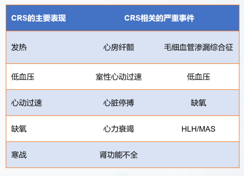图十:CRS的主要表现与CRS相关的严重事件