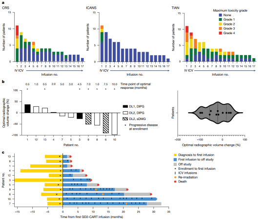 [2] Mount CW, Majzner RG, Sundaresh S, et al. Potent antitumor efficacy of anti-GD2 CAR T cells in H3-K27M+ diffuse midline gliomas. Nat Med. 2018 May;24(5):572-579.
